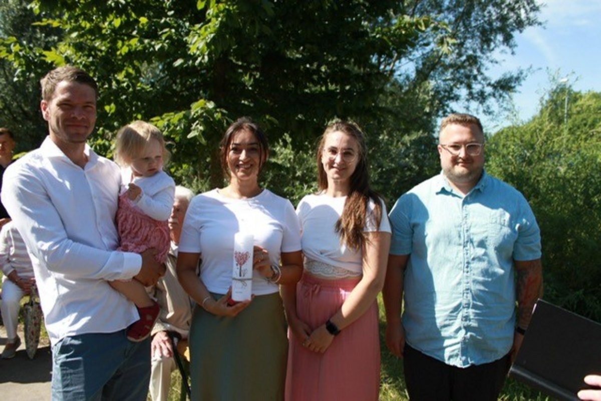 Von der St. Petrikirche zog eine große festlich gekleidete Gruppe mit Frieda Pulkenat zur Oker. Dort war schon alles für die Taufe aufgebaut. Pastor Werrer hielt eine wunderbare Ansprache und die teils launische Musikanlage sorgte für reichlich lustige Momente. Als dann der große Augenblick gekommen war, um mit Okerwasser, wie es in Rüningen von alters her üblich ist zu taufen, wollte Frieda bei keinem anderen auf dem Arm sein als bei ihrem Papa. Gemeinsam mit ihren Eltern, den Paten, Verwandten und Freunden begrüßen wir Frieda Pulkenat in unserer christlichen Gemeinschaft.