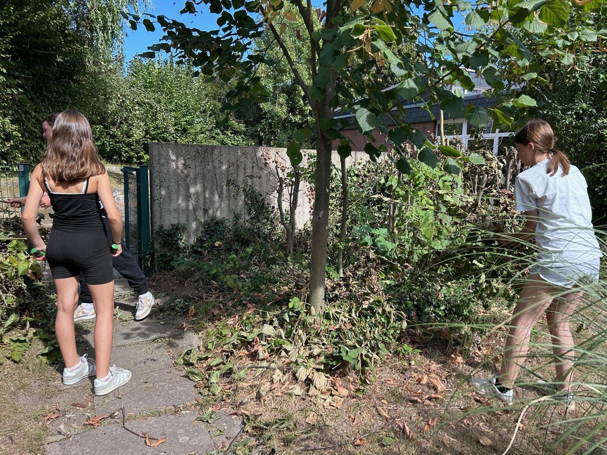 Dafür stellen sich die Schülerinnen folgenden Herausforderungen: Gartenarbeit und Pflanzen in den Boden bringen, Tapete abreißen, in der Kita Kinderspielzeug reinigen, bei TSV Kinderturnen helfen und im Seniorenheim bei der Olympiade unterstützen.