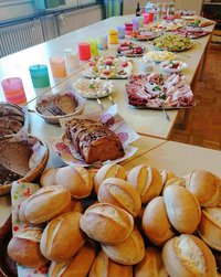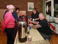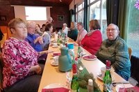 Das Adventsfrühstück am 17.12. im Gemeindehaus war natürlich auch sehr gut besucht. Die Frühstücksdamen hatten sich besonders viel Mühe gegeben. Frau Brunotte aus Broitzem hielt eine Andacht, und Inka Schlaak als Heimatpflegerin einen Vortrag über den Wiederaufbau der St. Petri Kirche nach der Zerstörung im Zweiten Weltkrieg.
