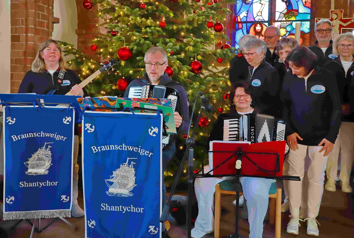 Am 14.12. dann nahmen uns die Sänger und Musikanten des Braunschweiger Shantychores in der St. Petri Kirche mit auf ihre weihnachtliche Reise. Alle Bänke waren besetzt, und unter dem Lichterbaum wurde vielen Zuhörern recht warm ums Herz.